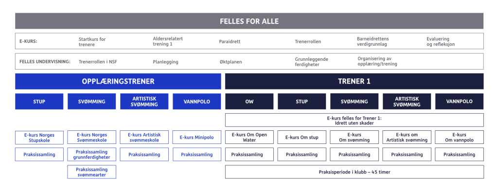 Norges Svømmeforbund har i forbindelse med ny utdanningsmodell for Instruktør- og Trener 1-utdanningen også tatt en liten oppfriskning av sine ekurs.